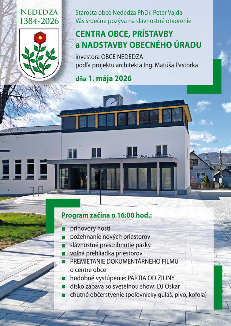 SLÁVNOSTNÉ OTVORENIE CENTRA OBCE NEDEDZA - POZVÁNKA